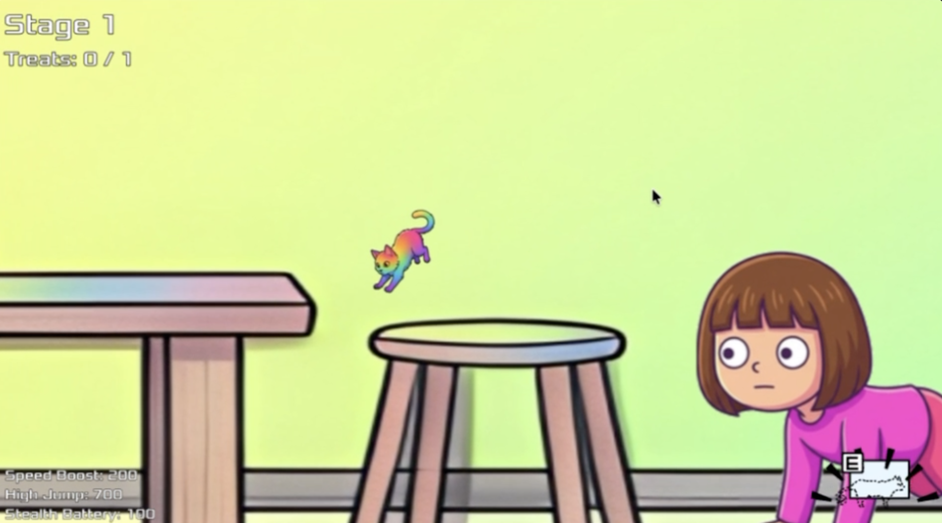Your mission is to navigate this domestic jungle and survive the relentless pursuit of "Mama." She’s armed with overwhelming love and wants nothing more than to trap you in a suffocating cuddle. For a tiny cat who treasures its freedom and possesses the power of invisibility, this is the ultimate tactical challenge!